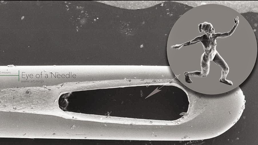 Το άγαλμα της γυναίκας τοποθετήθηκε στο μάτι μιας βελόνας και δείτε πόσο μικρό είναι ακόμη και εκεί